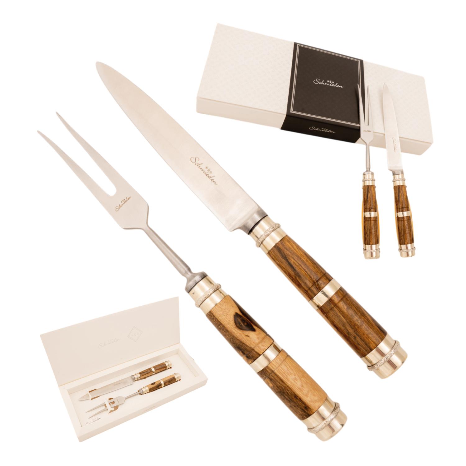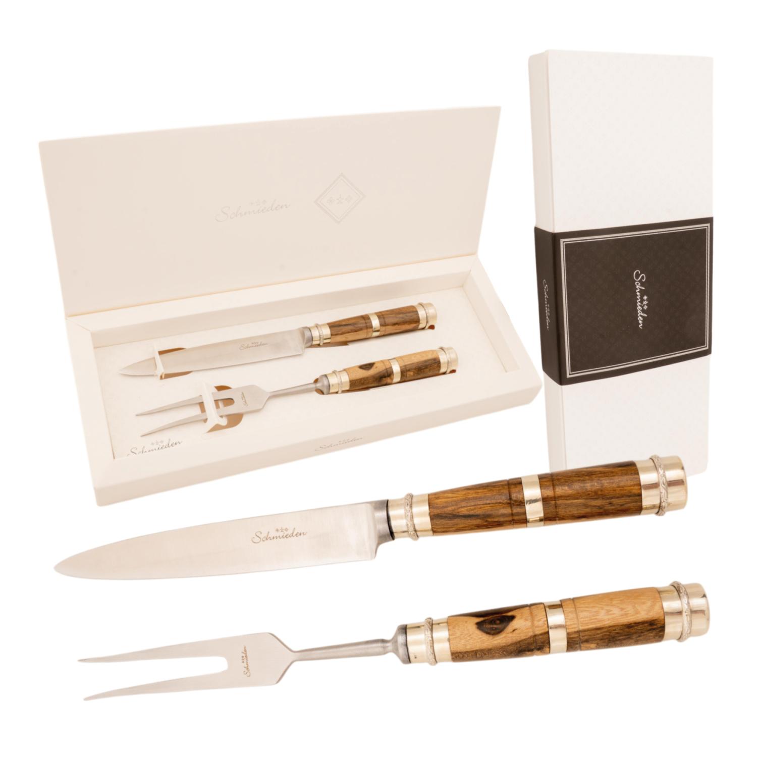 Juego De Cubierto Individual En Madera Y Alpaca 3 Virolas, Linea Fina, En Cajas Laminada, Hoja De 14 cm y Tenedor 2 Dientes En Acero Inoxidable Marca Schmieden Estilo AIRES DE SAN TELMO